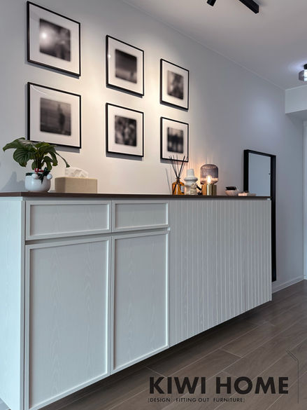 今次既戶主亦都係一對年輕新婚夫婦,由一開頭未傾設計前,佢地已經揀中左一套現成既胡桃木色電視機櫃及餐邊櫃,所以kiwi設計師幫佢地設計一個可以完全配合到既家居風格 - 美式現代風!